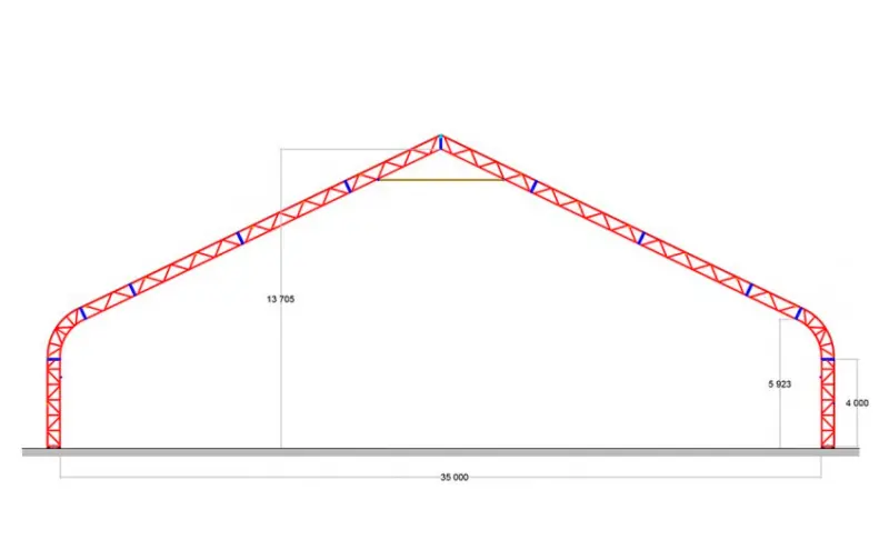 Oferece diferentes opções de largura (10, 15, 20, 25, 30, 35 ou 40 metros) e módulos de 5 metros de comprimento, permitindo ajustes de acordo com o projeto.
